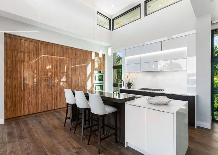 The polygloss is the preferred material for cabinets to modern and chic style , resembling the Italian lacquer.